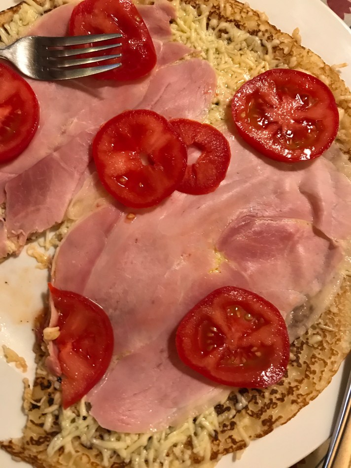 I wandered over to Pancake House Upstairs for dinner because I saw it on the Seth Meyers episode The Getaway. I arrived 45 minutes before closing. The hostess had been turning people away but let me in cause I was dining solo. A Maryland couple let me sit at their table. Had the pancake with ham, cheese and tomato. Another trend we need: savory pancakes for dinner.