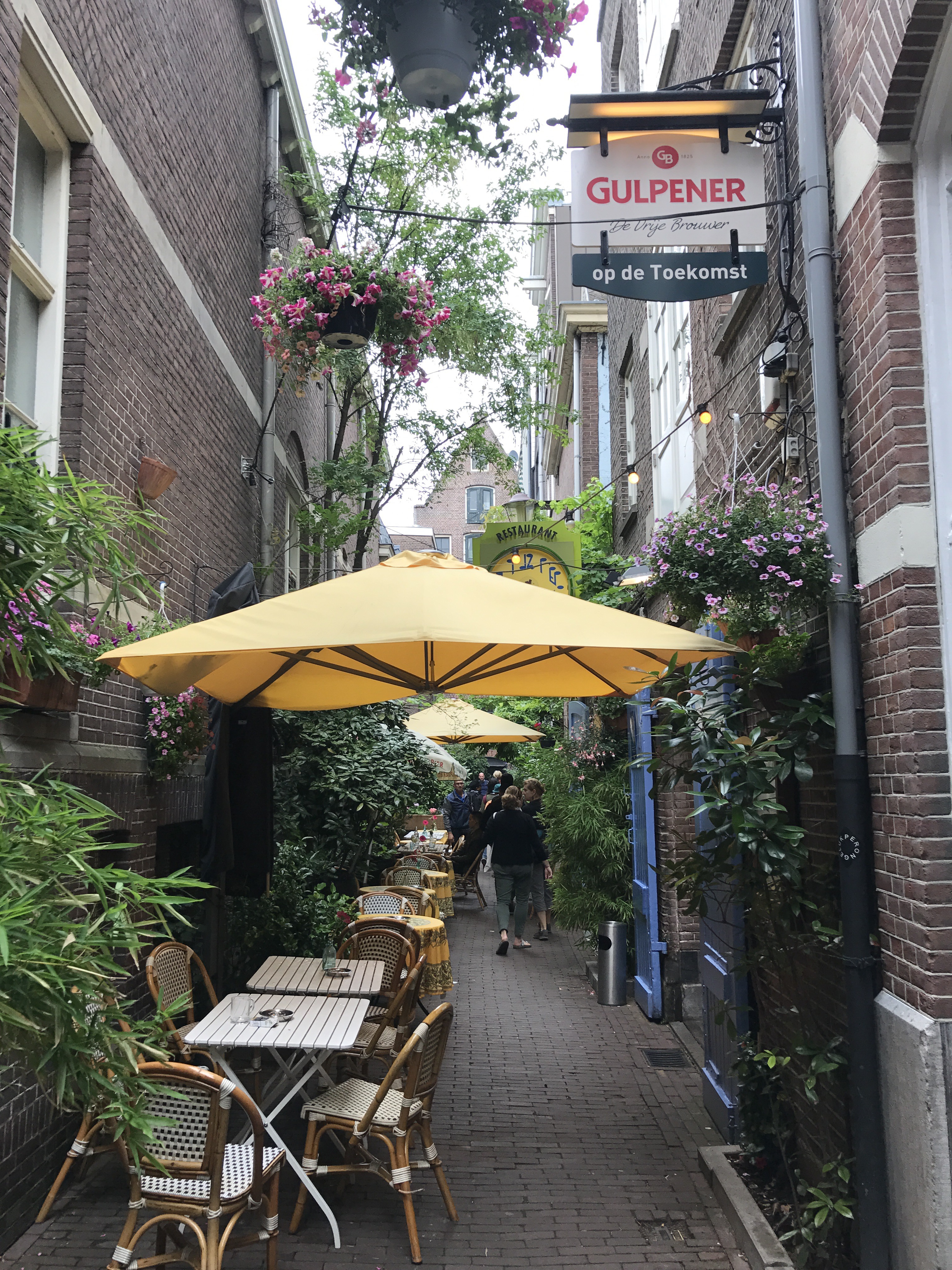 Sat down in Yoghurt Barn in the De Pijp neighborhood. Can’t wait for this trend in the U.S. Choose a size, yogurt base and toppings. I chose a house specialty – Choco Caramba. Dark chocolate chunks, banana, coconut flakes and hazelnuts! So good. Heel goed! Also had some hot tea to warm up from the monsoon outside.