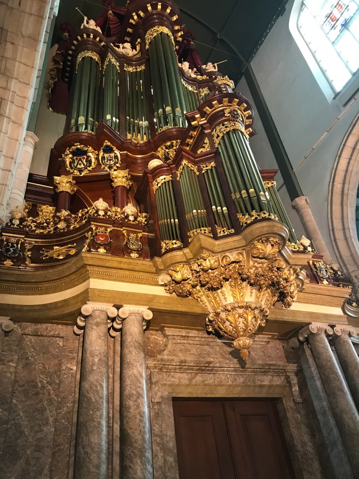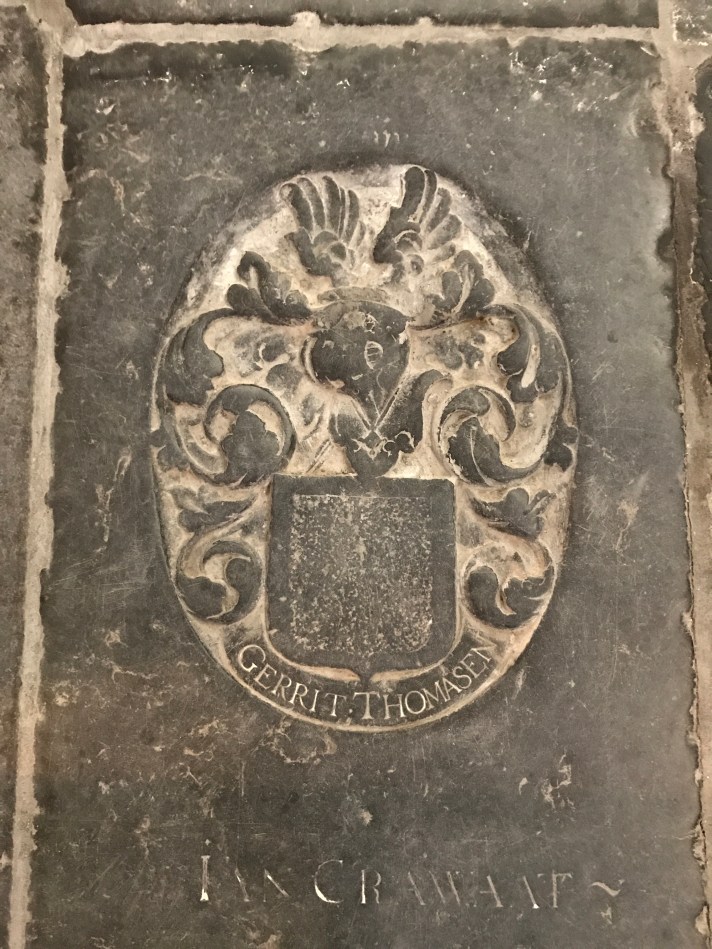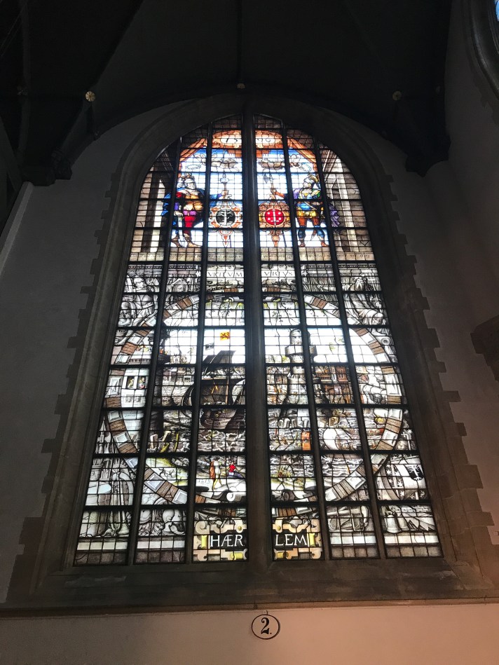 First stop – Church of Sint Janskerk (aka St. John the Baptist). Fifty percent of stained glass windows in Holland are in this church. It’s also the longest church in Holland. There’s also tombs in the church. Several. Many with elaborate carvings and covers. At one time it was common practice.