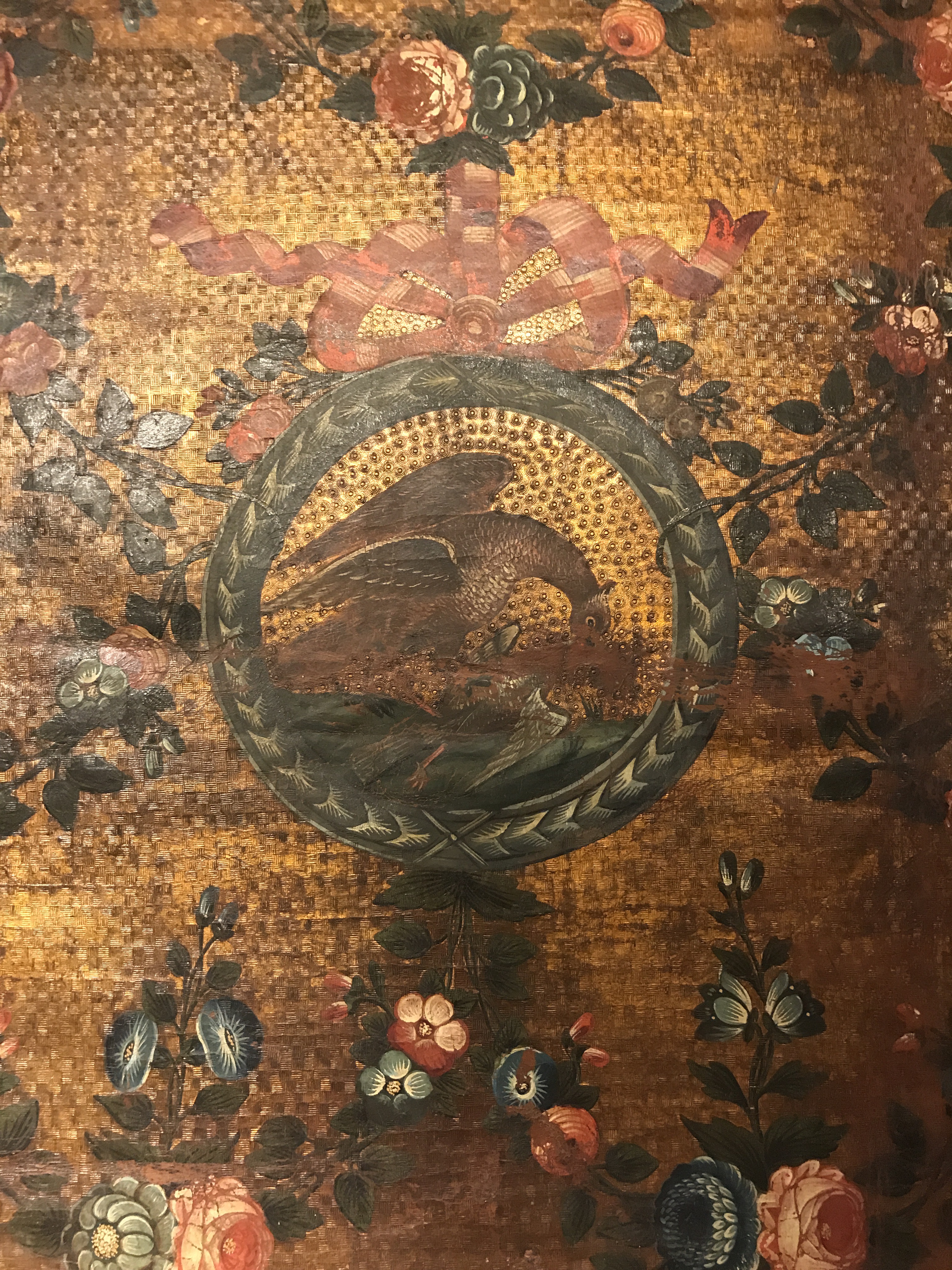 Like this gold leather wallpaper. Uh gold wallpaper…yes. Leather wallpaper? Like cow-skin wallpaper? Maybe not. Looked beautiful though.