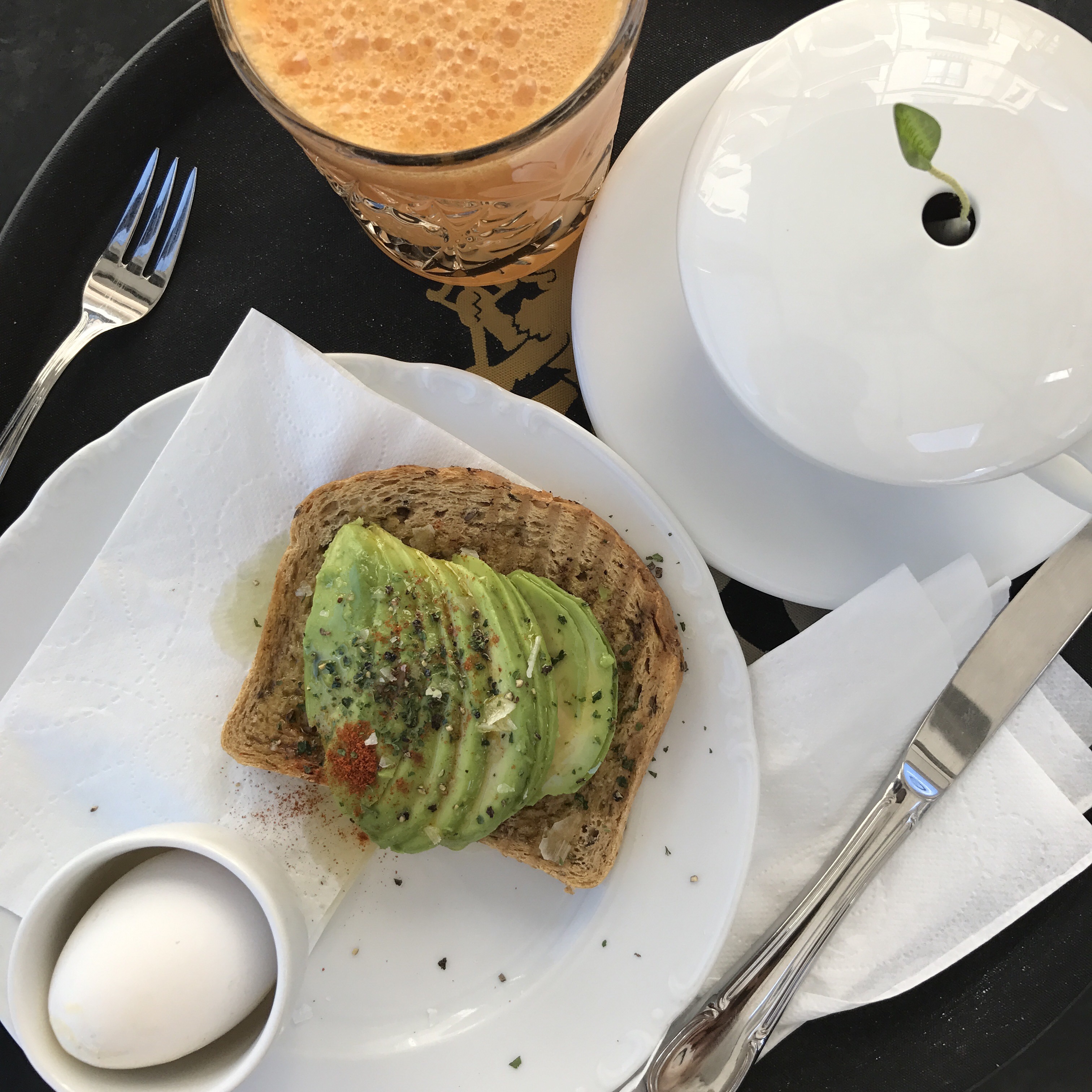 I stopped at Etoile in Helsingborg for breakfast before going to the train station. A filling breakfast of GF toast, avocado, fresh carrot/apple juice, a soft boiled egg and tea. Gotta remember this combo when I get home.
